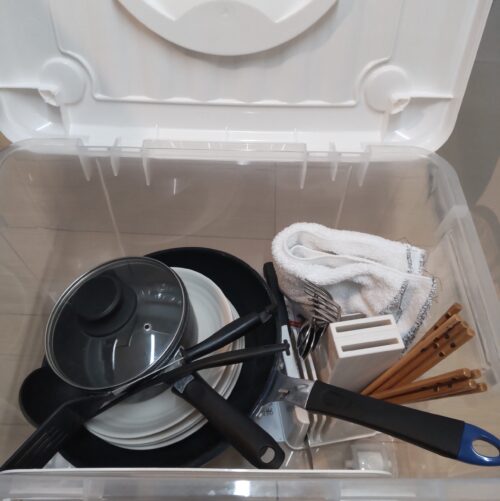 キッチンで簡単料理をして、夕食と翌日の朝食をまかないました。